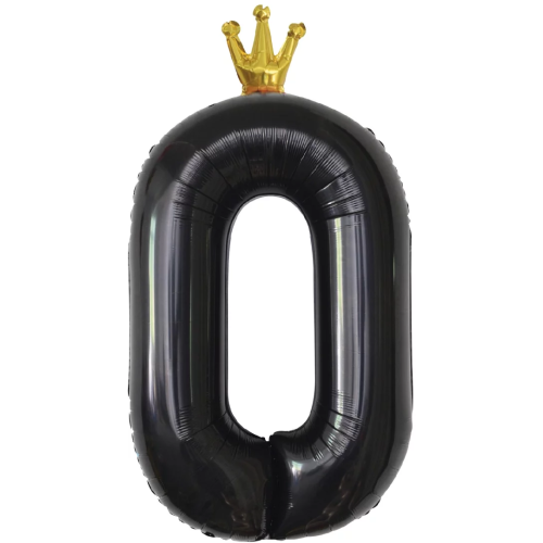 Шар (40''/102 см) Цифра, 0 Золотая корона, Черный, 1 шт. в уп., 131170
