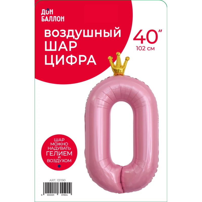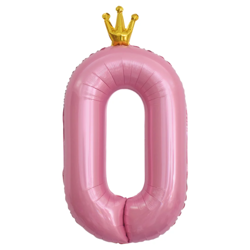 Шар (40''/102 см) Цифра, 0 Золотая корона, Розовый, 1 шт. в уп., 131190