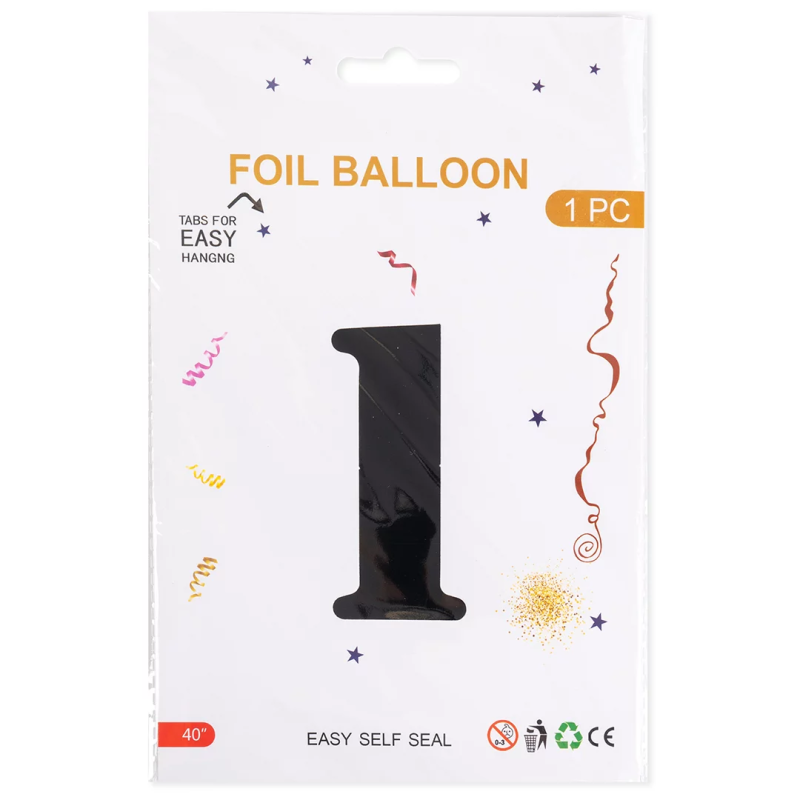 Шар (40''/102 см) Цифра, 1, Черный, Металлик, 1 шт. в уп., 27351