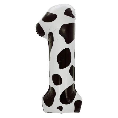 Шар (40''/102 см) Цифра, 1 Пятнышки, Черный/Белый, 1 шт. в уп., 23771