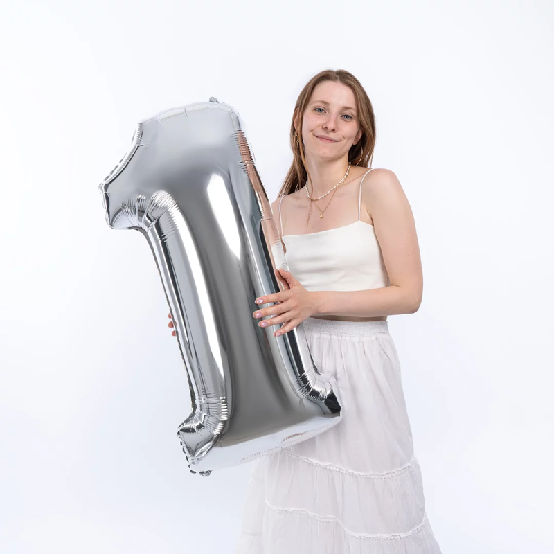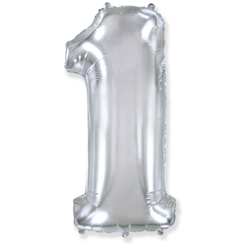 Шар (40''/102 см) Цифра, 1, Серебро, 1 шт., 901761P