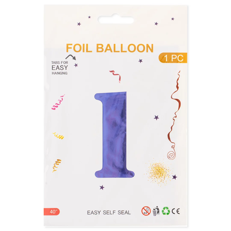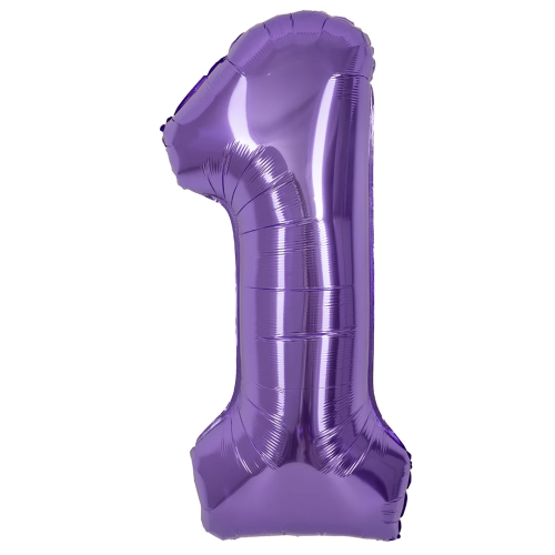 Шар (40''/102 см) Цифра, 1, Сиреневый, Металлик, 1 шт. в уп., 24211