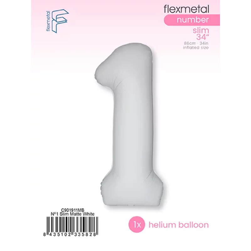 Шар (40''/102 см) Цифра, 1 Slim, Белый, Матовый, 1 шт. в уп., C901911MB