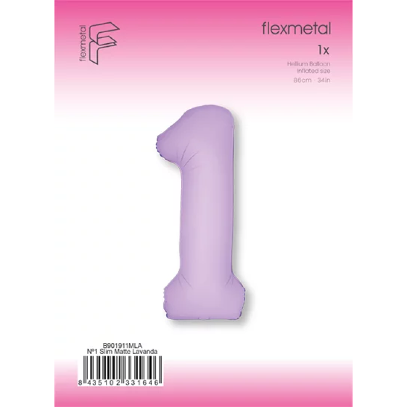 Шар (40''/102 см) Цифра, 1 Slim, Лаванда, Матовый, 1 шт. в уп., B901911MLA
