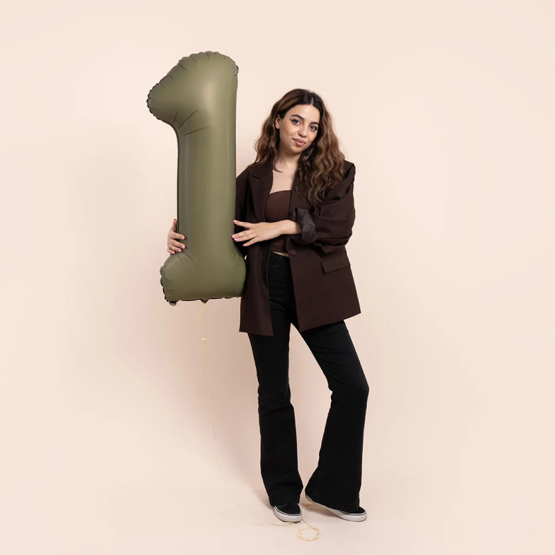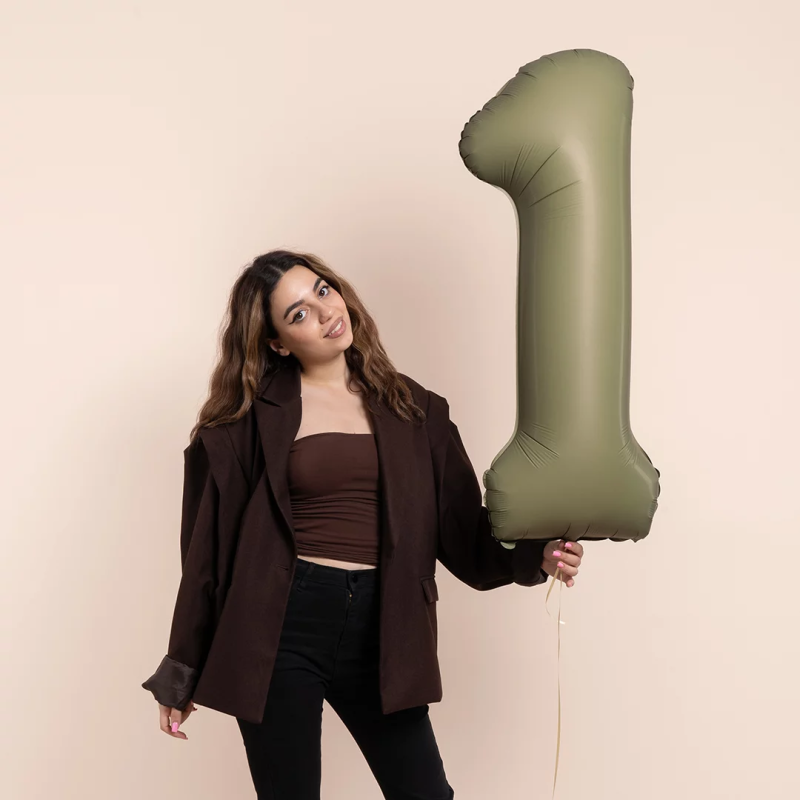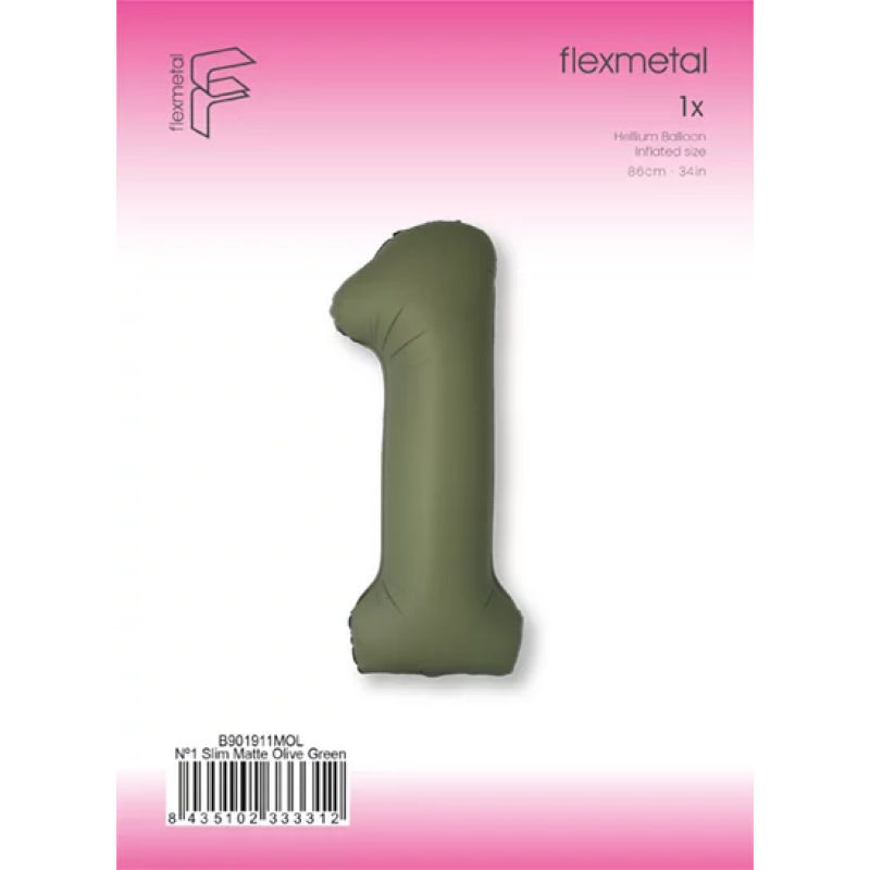 Шар (40''/102 см) Цифра, 1 Slim, Оливковый, Матовый, 1 шт. в уп., B901911MOL