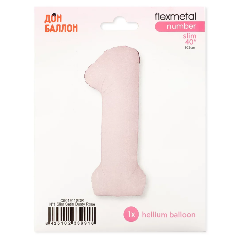 Шар (40''/102 см) Цифра, 1 Slim, Пыльная роза, Сатин, 1 шт. в уп., C901911SDR