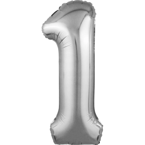 Шар (40''/102 см) Цифра, 1 Slim, Серебро, 1 шт. в уп., 754467