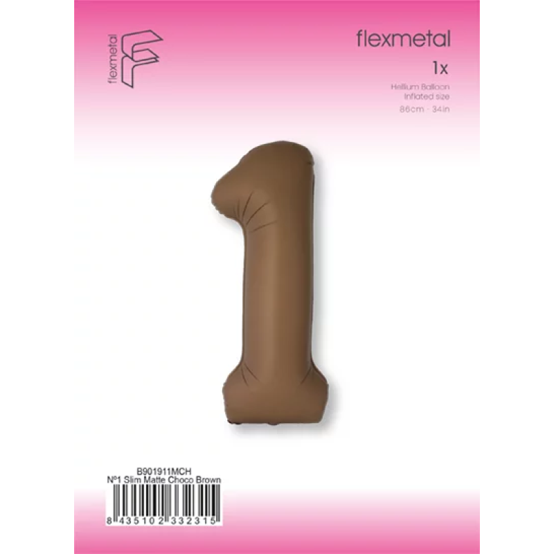 Шар (40''/102 см) Цифра, 1 Slim, Шоколад, Матовый, 1 шт. в уп., B901911MCH