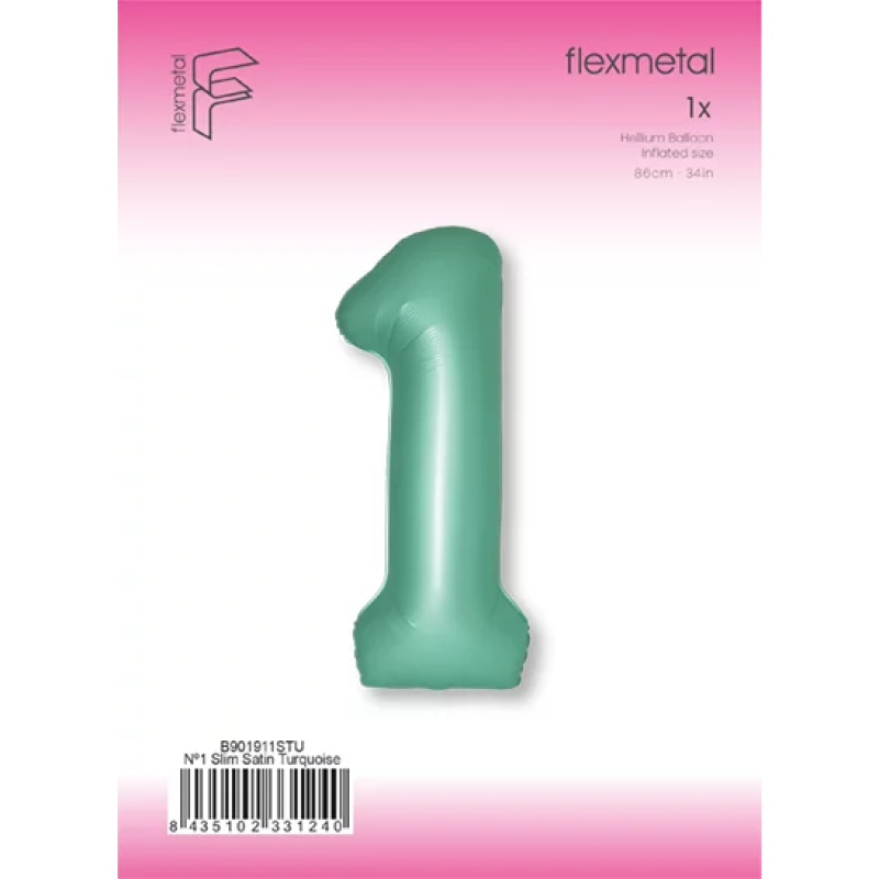 Шар (40''/102 см) Цифра, 1 Slim, Тиффани, Сатин, 1 шт. в уп., B901911STU