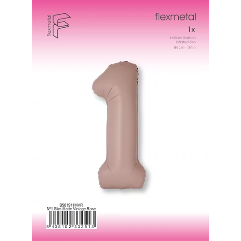 Шар (40''/102 см) Цифра, 1 Slim, Винтажная роза, Матовый, 1 шт. в уп., B901911MVR