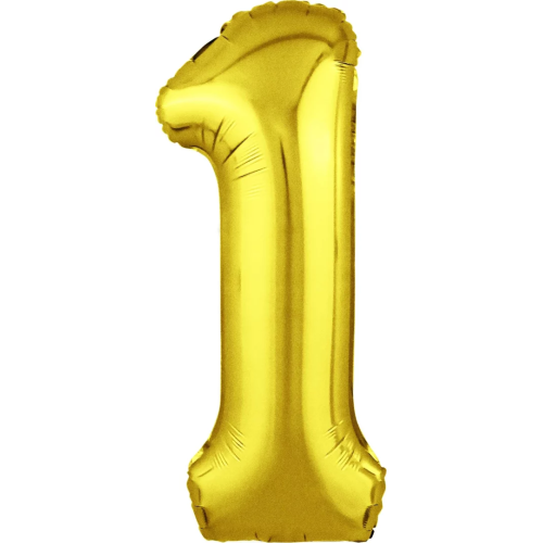 Шар (40''/102 см) Цифра, 1 Slim, Золото, 1 шт. в уп., 754450