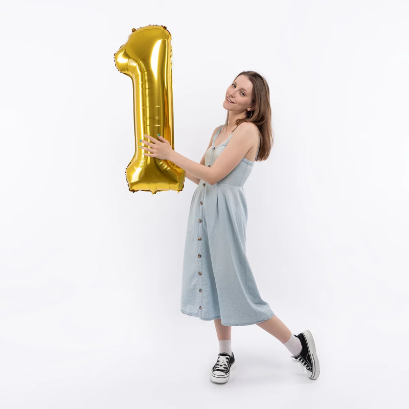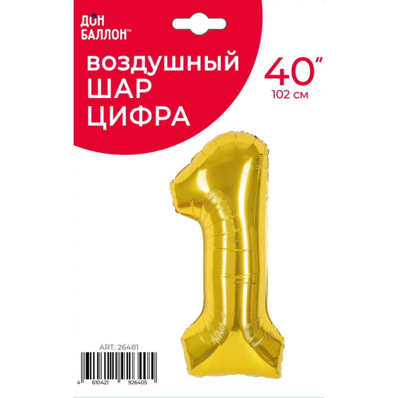 Шар (40''/102 см) Цифра, 1, Золото, Металлик, 1 шт. в уп., 26481