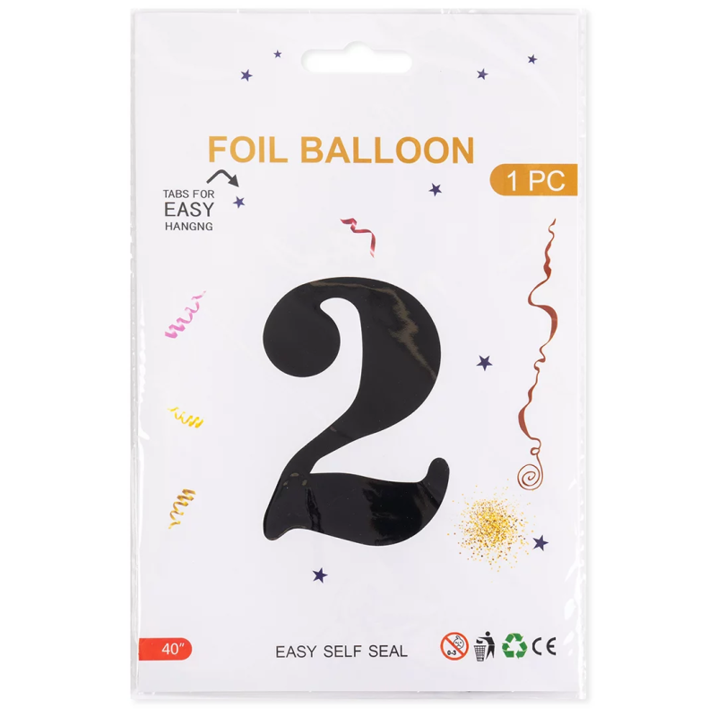 Шар (40''/102 см) Цифра, 2, Черный, Металлик, 1 шт. в уп., 27352