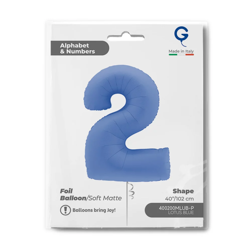 Шар (40''/102 см) Цифра, 2, Голубой Лотос, Матовый, 1 шт. в уп., 400200MLUB-P