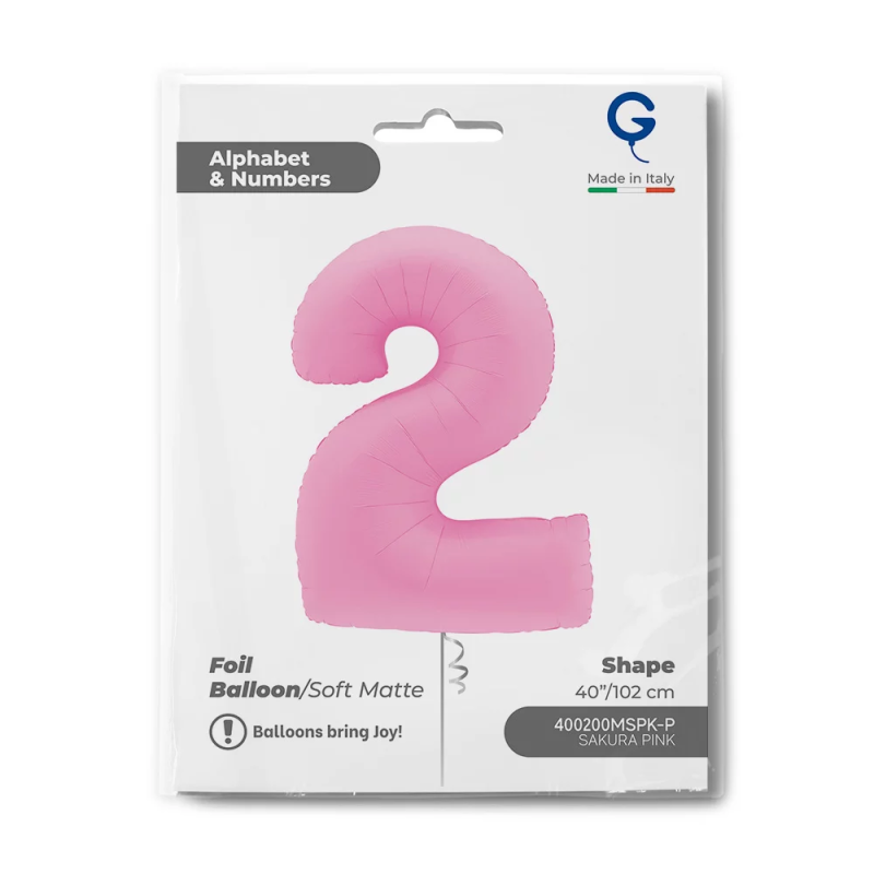 Шар (40''/102 см) Цифра, 2, Розовая Сакура, Матовый, 1 шт. в уп., 400200MSPK-P