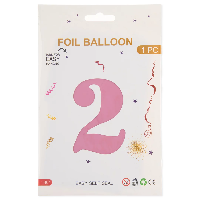 Шар (40''/102 см) Цифра, 2, Розовый, Матовый, 1 шт. в уп., 24102