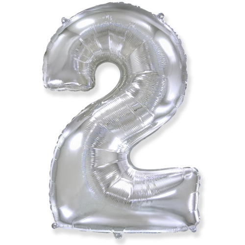 Шар (40''/102 см) Цифра, 2, Серебро, 1 шт., 901762P