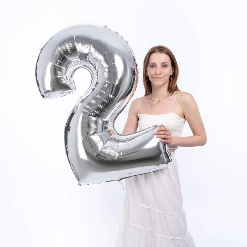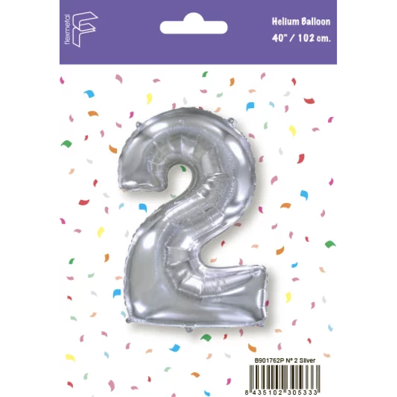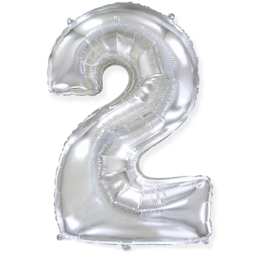 Шар (40''/102 см) Цифра, 2, Серебро, 1 шт. в уп., B901762P
