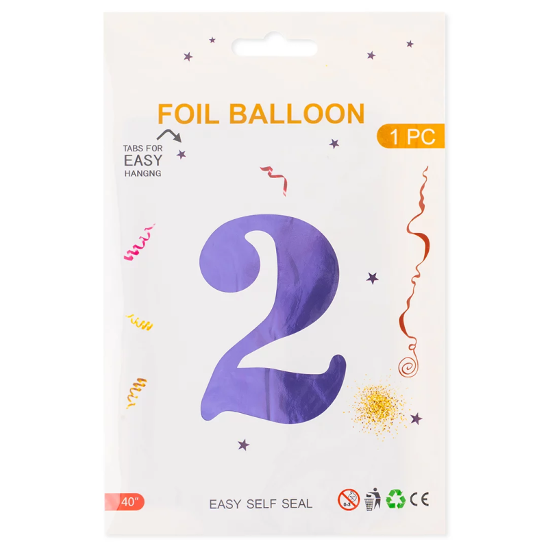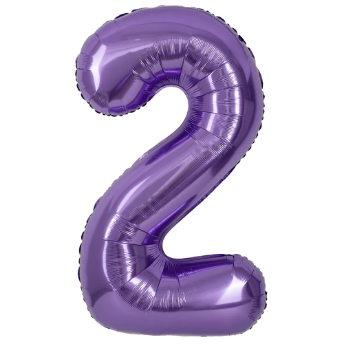 Шар (40''/102 см) Цифра, 2, Сиреневый, Металлик, 1 шт. в уп., 24212