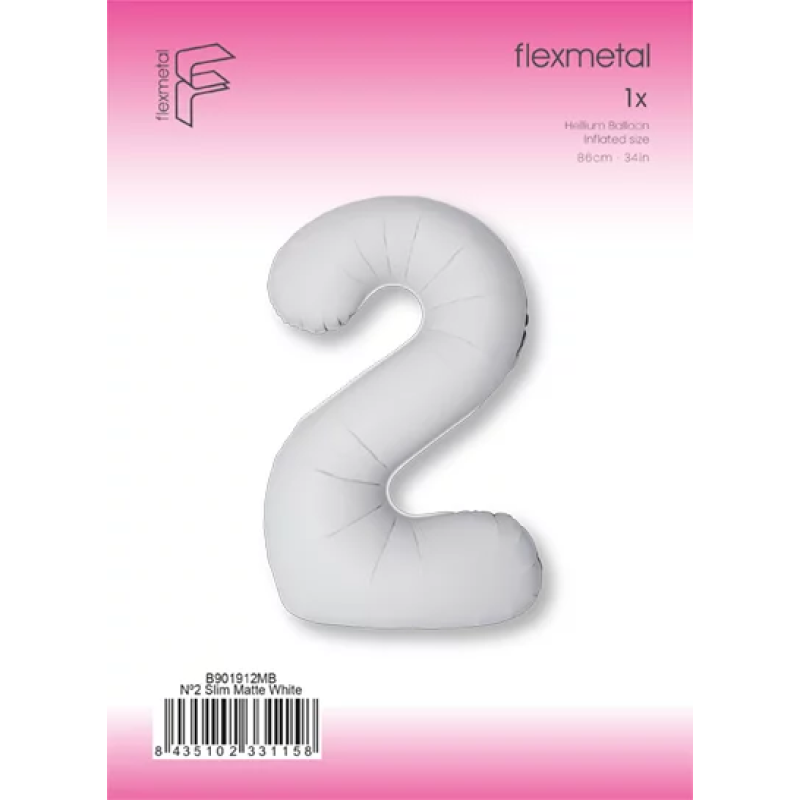 Шар (40''/102 см) Цифра, 2 Slim, Белый, Матовый, 1 шт. в уп., B901912MB