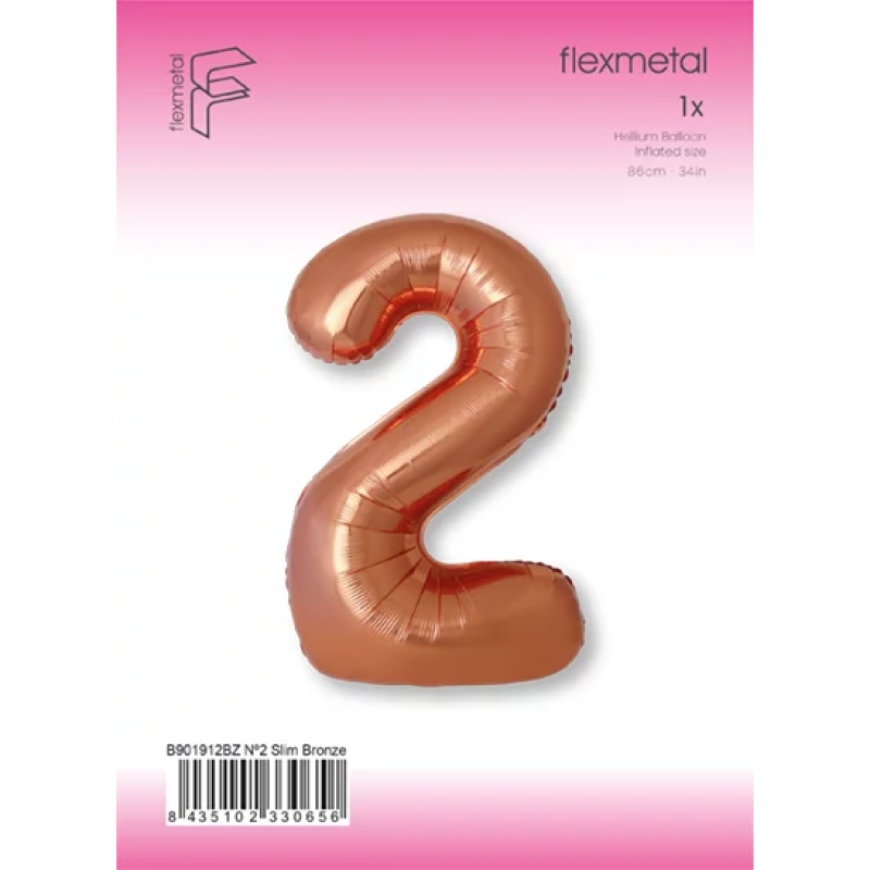 Шар (40''/102 см) Цифра, 2 Slim, Бронза, Металлик, 1 шт. в уп., B901912BZ