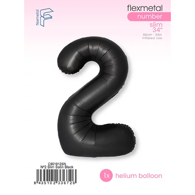 Шар (40''/102 см) Цифра, 2 Slim, Черный, Сатин, 1 шт. в уп., C901912SN
