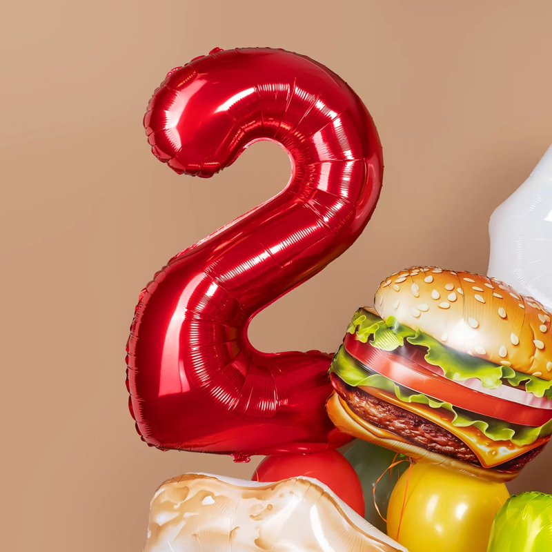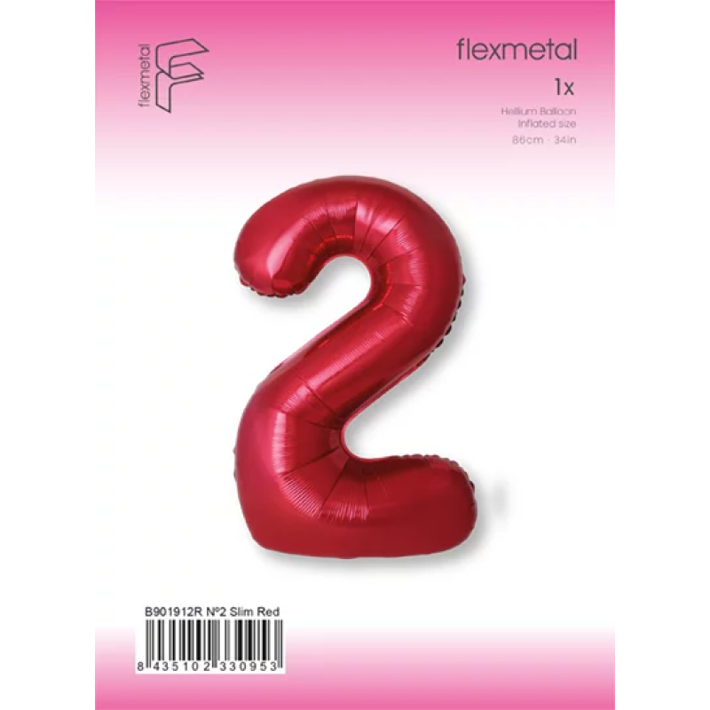 Шар (40''/102 см) Цифра, 2 Slim, Красный, Металлик, 1 шт. в уп., B901912R