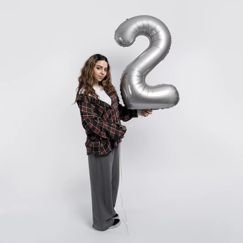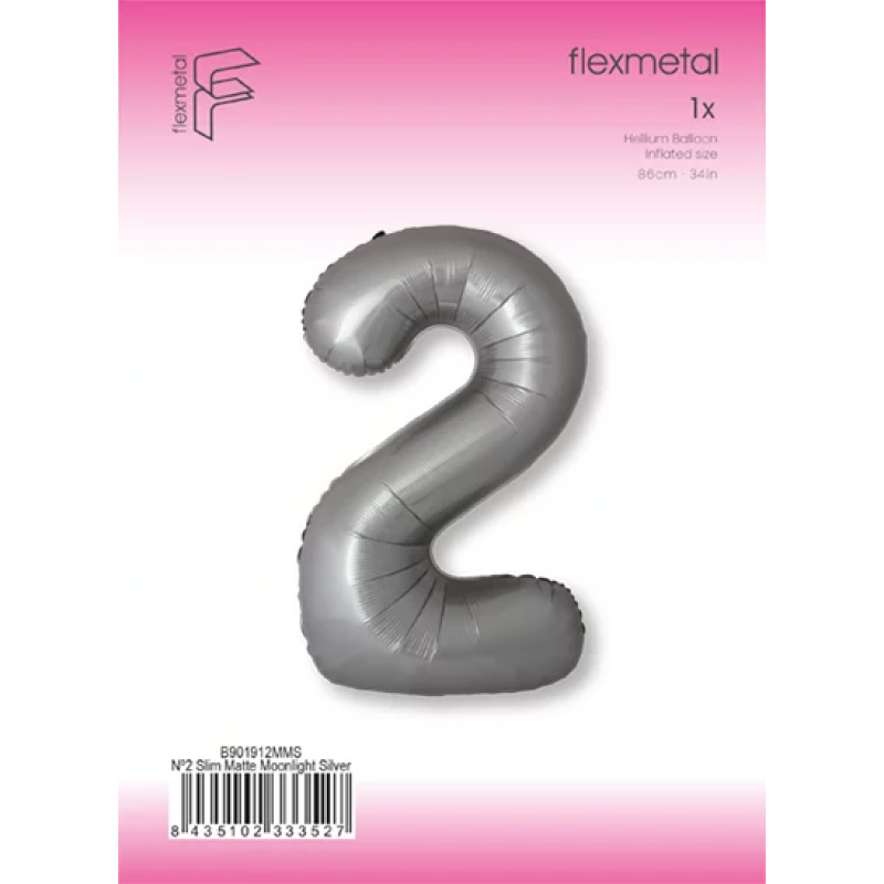 Шар (40''/102 см) Цифра, 2 Slim, Лунное Серебро, Матовый, 1 шт. в уп., B901912MMS