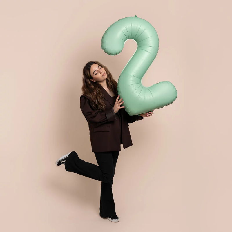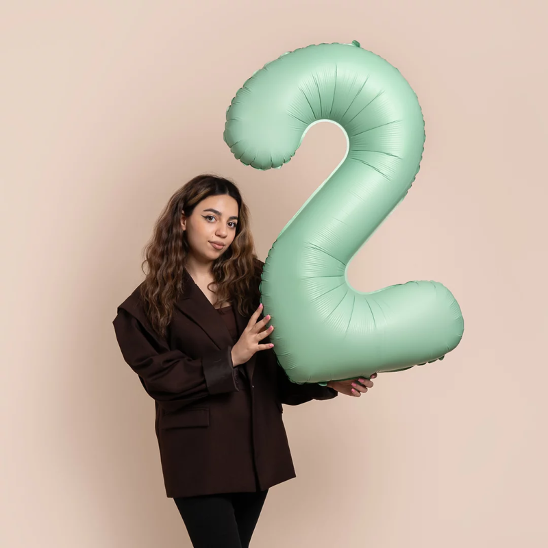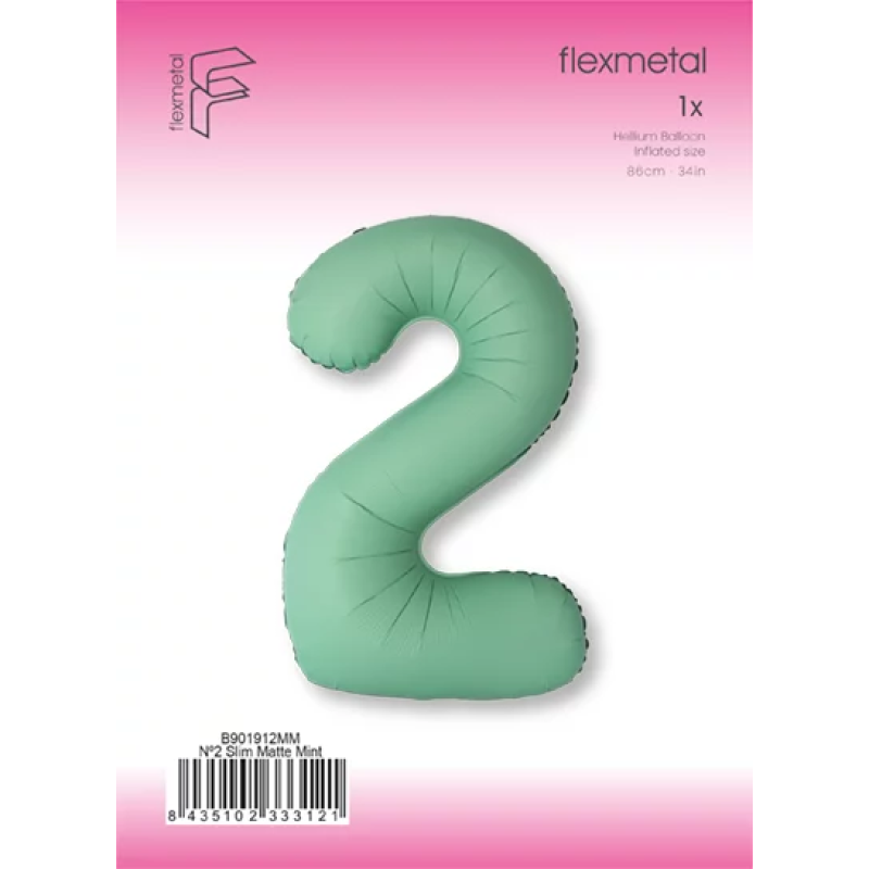 Шар (40''/102 см) Цифра, 2 Slim, Мятный, Матовый, 1 шт. в уп., B901912MM