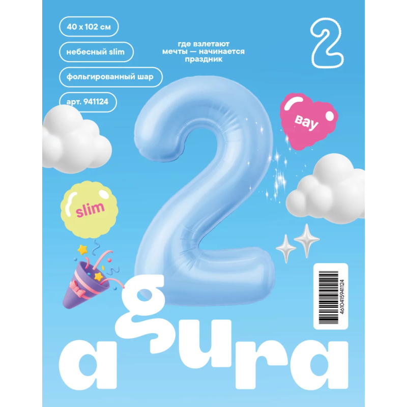 | Линейка | Agura Шар (40''/102 см) Цифра, Slim, Небесный |