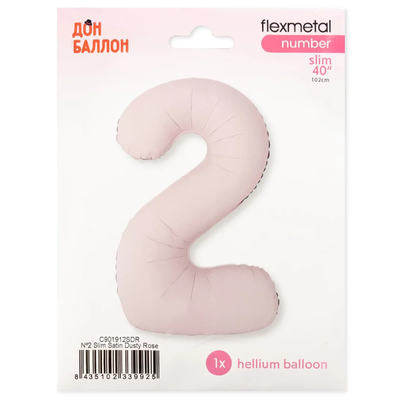 Шар (40''/102 см) Цифра, 2 Slim, Пыльная роза, Сатин, 1 шт. в уп., C901912SDR