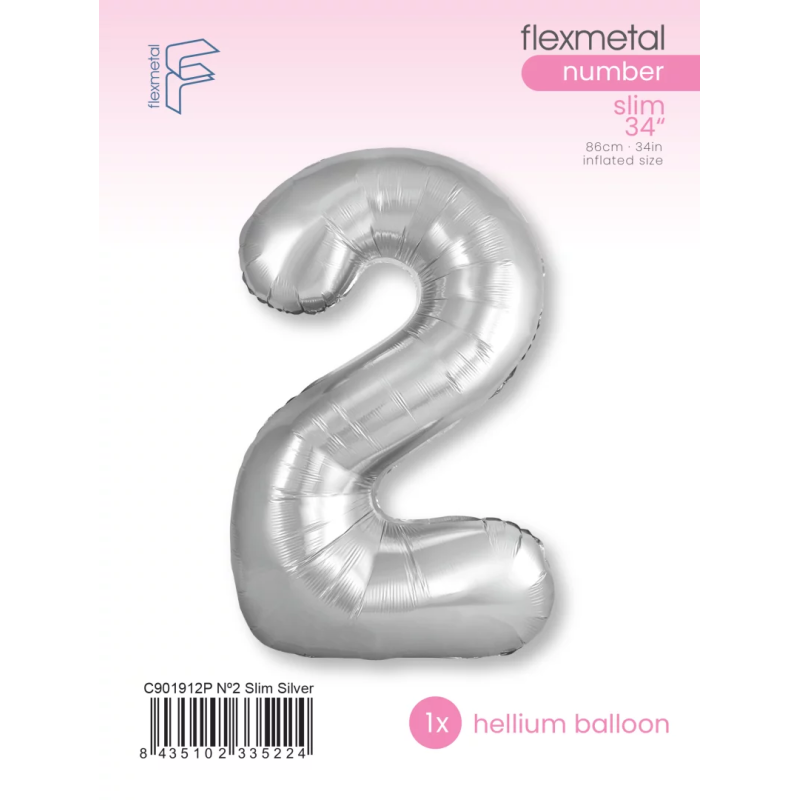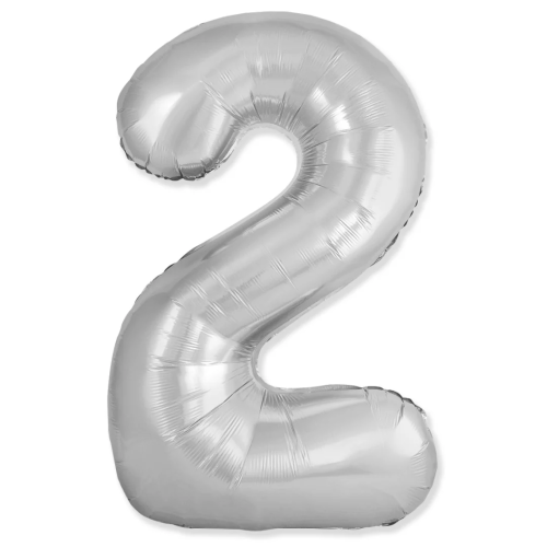 Шар (40''/102 см) Цифра, 2 Slim, Серебро, 1 шт. в уп., C901912P