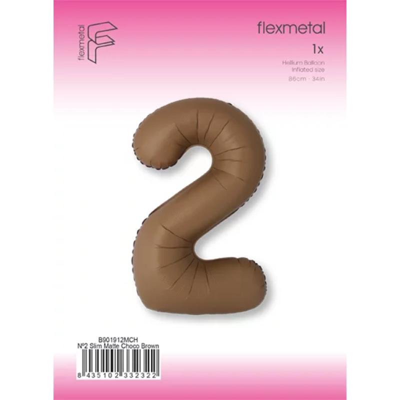 Шар (40''/102 см) Цифра, 2 Slim, Шоколад, Матовый, 1 шт. в уп., B901912MCH