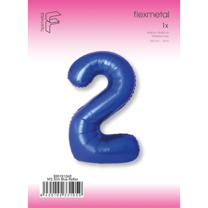 Шар (40''/102 см) Цифра, 2 Slim, Синий хром, Металлик, 1 шт. в уп., B901912AR
