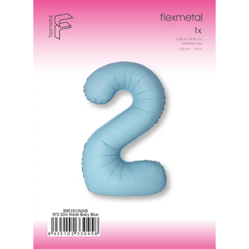 Шар (40''/102 см) Цифра, 2 Slim, Светло-голубой, Матовый, 1 шт. в уп., B901912MAB