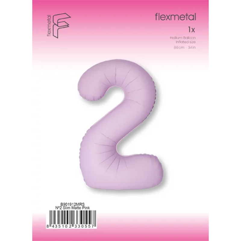 Шар (40''/102 см) Цифра, 2 Slim, Светло-розовый, Матовый, 1 шт. в уп., B901912MRS