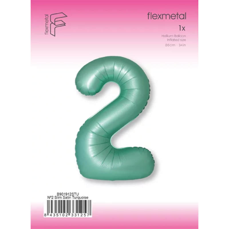 Шар (40''/102 см) Цифра, 2 Slim, Тиффани, Сатин, 1 шт. в уп., B901912STU