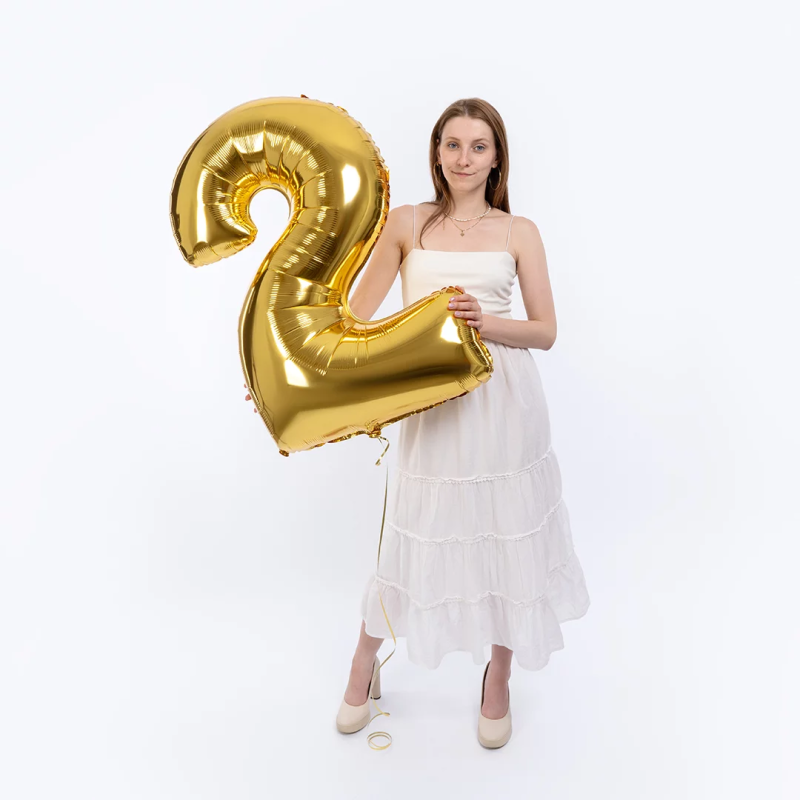 Шар (40''/102 см) Цифра, 2, Золото, 1 шт., 901762O