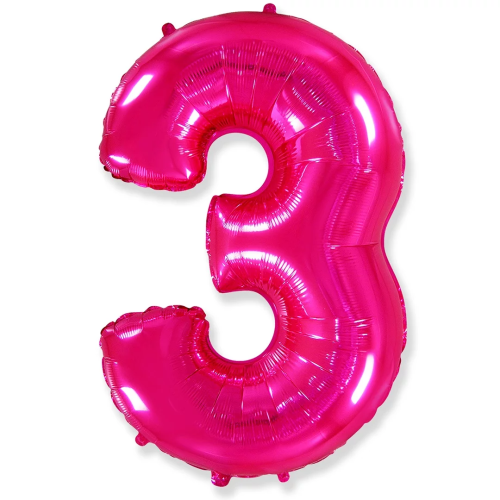 Шар (40''/102 см) Цифра, 3, Фуше, 1 шт. в уп., C901763F