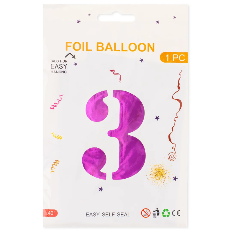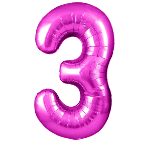Шар (40''/102 см) Цифра, 3, Фуше, Металлик, 1 шт. в уп., 24223