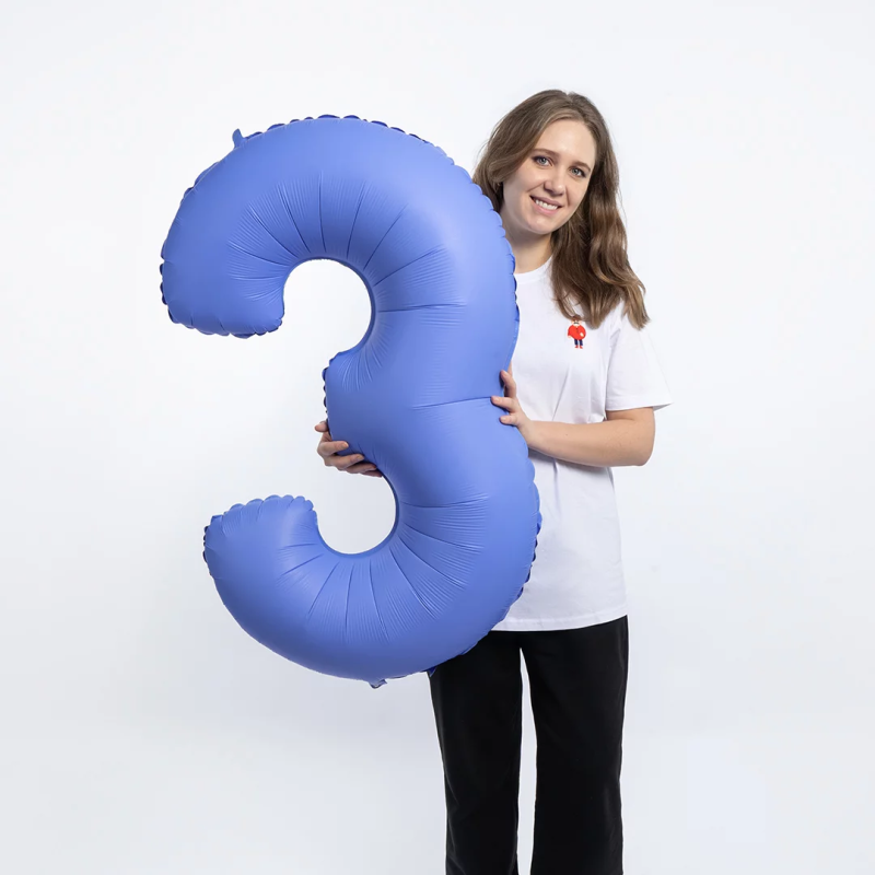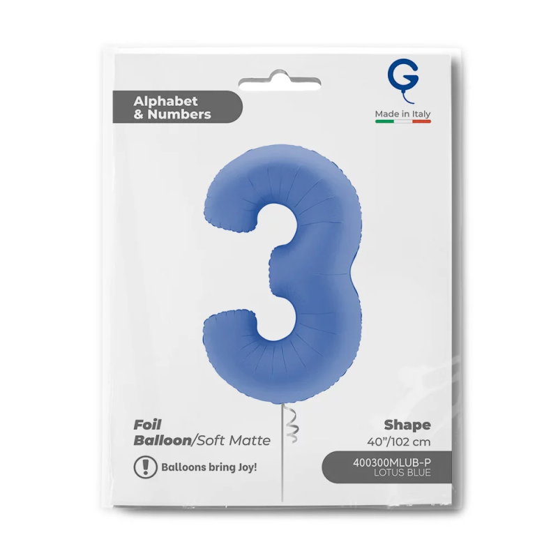 Шар (40''/102 см) Цифра, 3, Голубой Лотос, Матовый, 1 шт. в уп., 400300MLUB-P