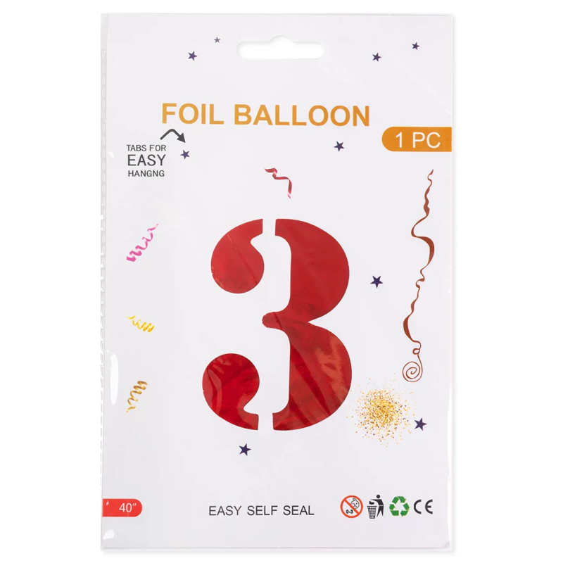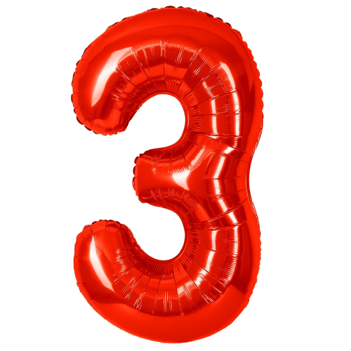 Шар (40''/102 см) Цифра, 3, Красный, Металлик, 1 шт. в уп., 27363