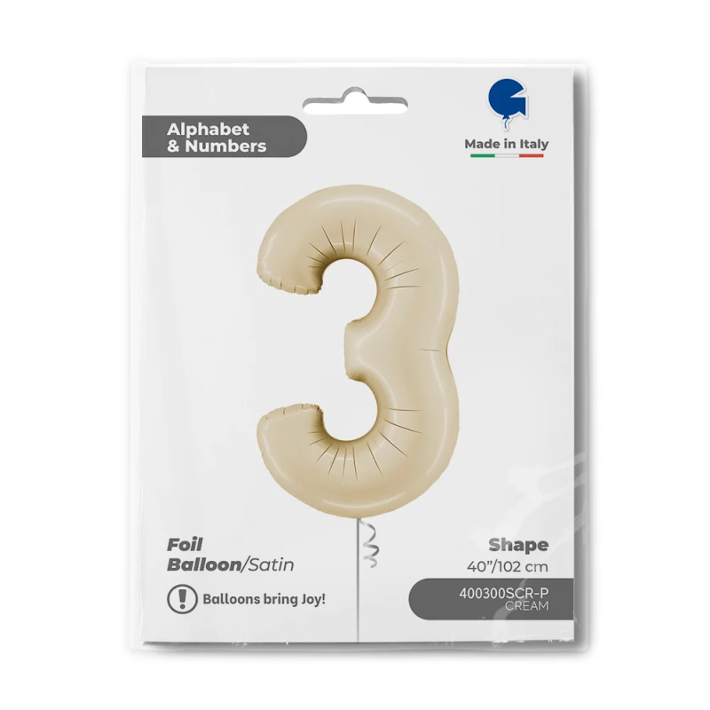 Шар (40''/102 см) Цифра, 3, Кремовый, Сатин, 1 шт. в уп., 400300SCR-P