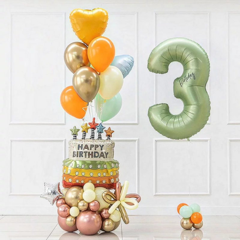 Шар (40''/102 см) Цифра, 3, Оливковый, Сатин, 1 шт. в уп., 400300SOGR-P