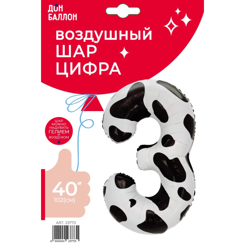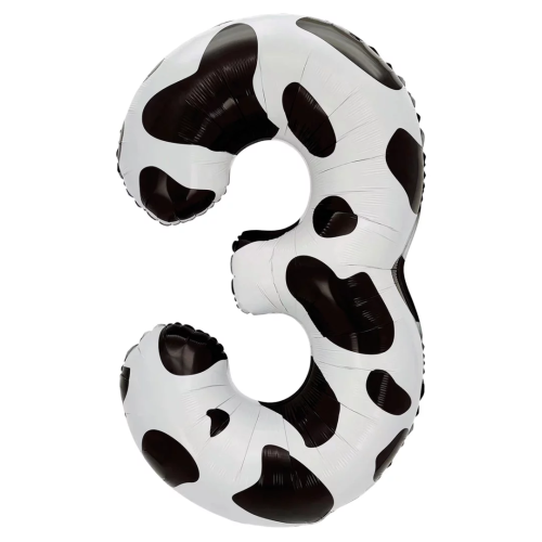 Шар (40''/102 см) Цифра, 3 Пятнышки, Черный/Белый, 1 шт. в уп., 23773