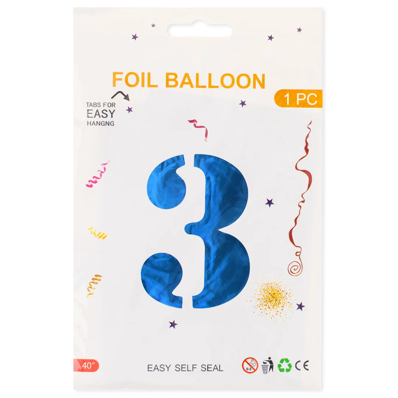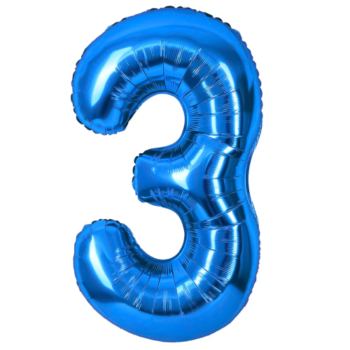 Шар (40''/102 см) Цифра, 3, Синий, Металлик, 1 шт. в уп., 26263