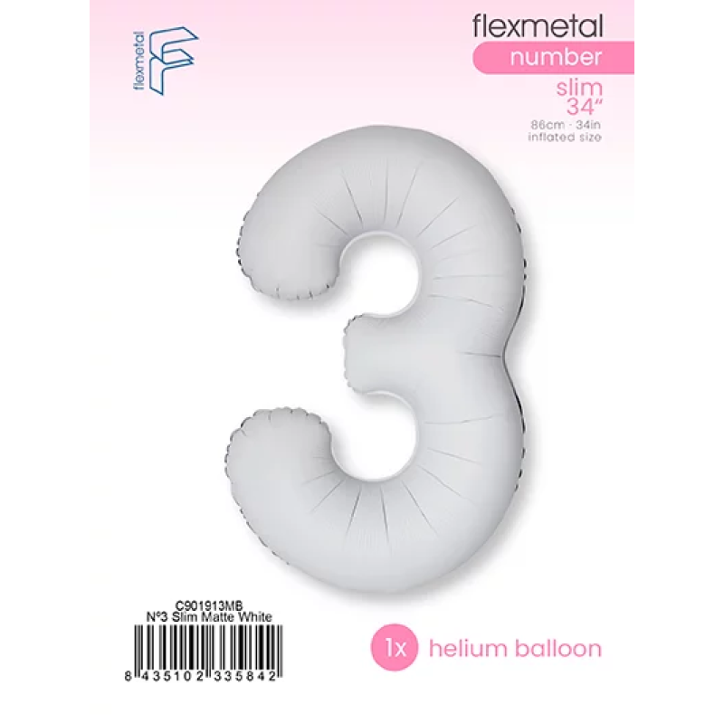 Шар (40''/102 см) Цифра, 3 Slim, Белый, Матовый, 1 шт. в уп., C901913MB