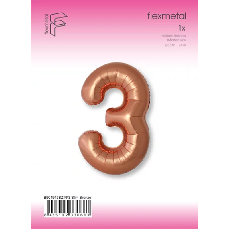 Шар (40''/102 см) Цифра, 3 Slim, Бронза, Металлик, 1 шт. в уп., B901913BZ