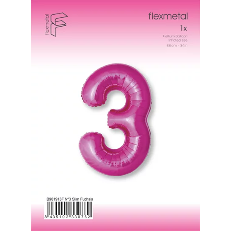Шар (40''/102 см) Цифра, 3 Slim, Фуше, Металлик, 1 шт. в уп., B901913F