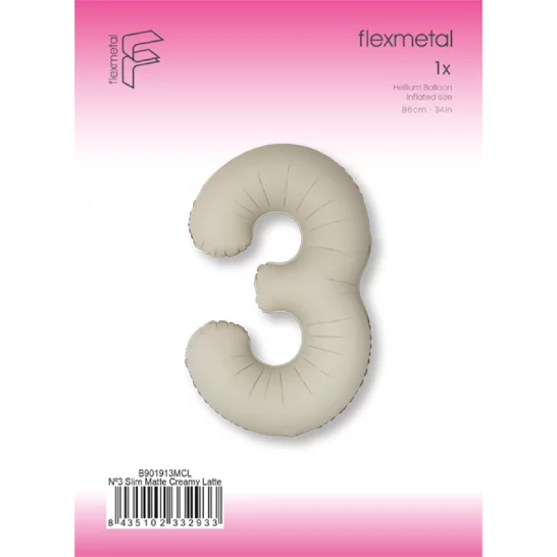 Шар (40''/102 см) Цифра, 3 Slim, Кремовый Латте, Матовый, 1 шт. в уп., B901913MCL